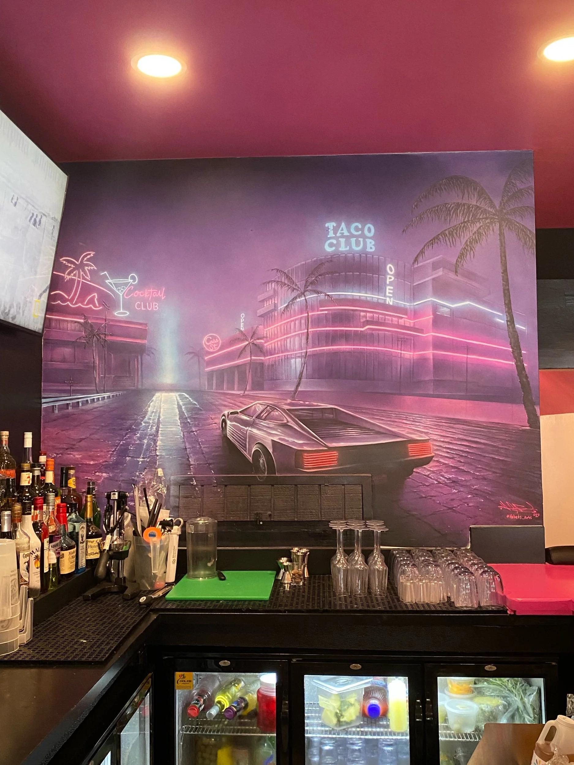 When GTA and Miami Vice collide inside a bar and taco shop… you know you found the right place. Coacktail club/ Harry’s taco/ Cass st OB.